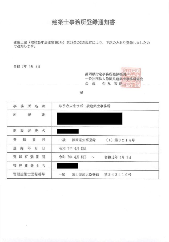 ・2025年4月 ゆうき未来ラボ一級建築士事務所開設